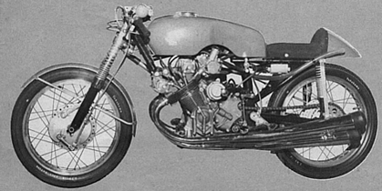 The 350cc Norton "Lowboy" that appeared only in practice, ridden by Eddie Crooks