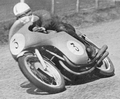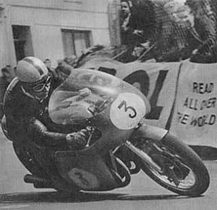 Mitsuo Itoh (Suzuki) and Ernst Degner (MZ) both came to grief at The Bungalow. Itoh wrote off his machine but escaped with only a cut lip and abrasions. The Suzuki mechanics set about building a replacement machine. Br> Degner was not so lucky, trapping his foot between road and foot rest, breaking bones in his foot.