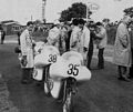 Senior - Bob Brown Norton, No.1 pushed off with Bob Anderson, Norton at No.2, then ten seconds later John Surtees at No.3 with Mike Hailwood at No.4. Derek Minter and Bob MacIntyre were No.s 5 and 6