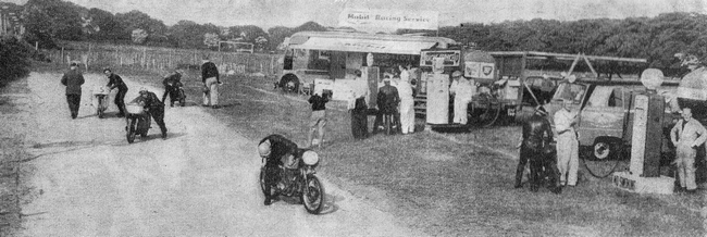 My parents drove up to Liverpool and left the car in a special long-term park. They travelled over to the Island as foot passengers but had the use of a car while they were there. They booked into the Imperial Hotel. A few days later, my girlfriend (her first time over) and I flew over from Newcastle in a DC-3 (take off 16.20 arrival at Ronaldsway 17.15) and we also signed into the Imperial Hotel (see hotel right) She was allocated a single bedroom on one side of my parents bedroom and I was on the other side !!! However she was enthusiastic enough to get up at 4 am each morning before we went out to the practicing and we had time for a quick cuddle. I used to say girls don't mix with TT but this was different. We all walked up to the newly laid-out paddock and warm-up area from the sea front and watched the practices, popping into the tent for cocoa or soup in between laps. My Dad was a close friend of Tommy Ryan and Bill Lisle so thanks to them that we were able to get in amongst the action.