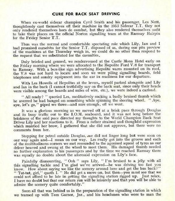 (THIS ARTICLE IS REPRODUCED FROM THE NEWCASTLE AND DISTRICT MOTOR CYCLE CLUB MAGAZINE - AUTUMN 1955)